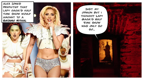Alex Jones predicted that Lady Gaga's Half Time Show would amount to a Satanic Ritual