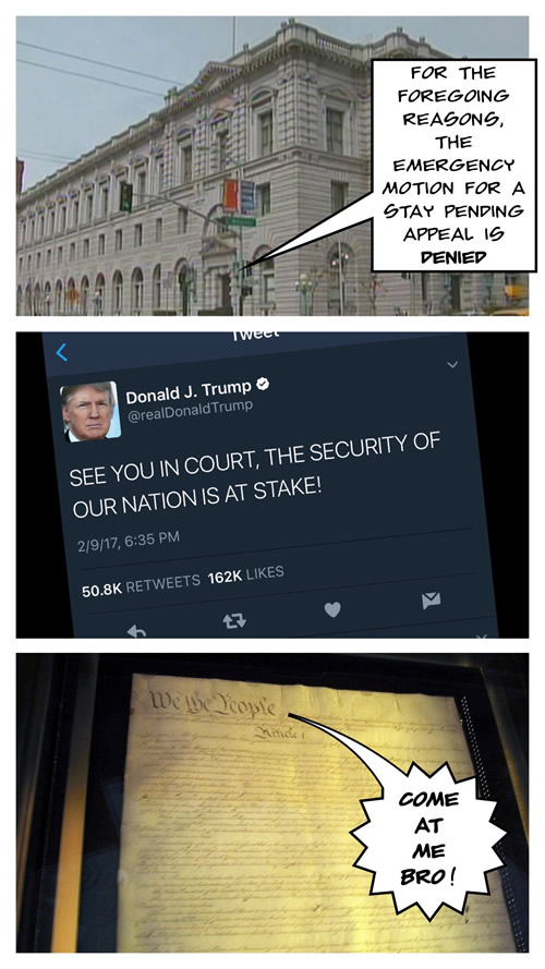 @realDonaldTrump: (in allcaps as to signify yelling) See you in court, the security of our nation is at stake!