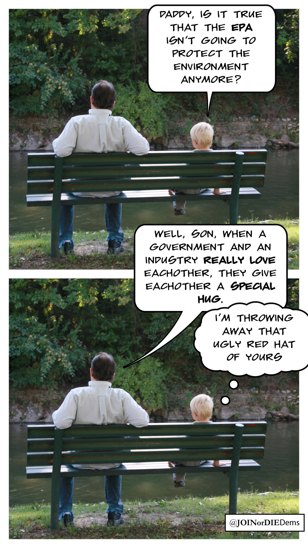 Son (to father): Daddy is it true that the EPA isn't going to protect the environment anymore?